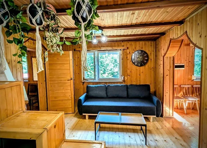 Οι επισκέπτες μπορούν να γευματίσουν στην εξοπλισμένη μικρή κουζίνα, καθώς και στην τραπεζαρία, που διατίθενται σ' αυτή τη βίλα. Οι επισκέπτες μπορούν επίσης να χρησιμοποιήσουν ψυγείο, φούρνο και γυάλινα σκεύη για να ετοιμάσουν το γεύμα τους. Επίσης, δίπλα βρίσκεται στάση λεωφορείου Wielka Puszcza, που είναι σε απόσταση 600 μέτρων. Οι επισκέπτες μπορούν να απολαύσουν σάουνα στο χώρο.